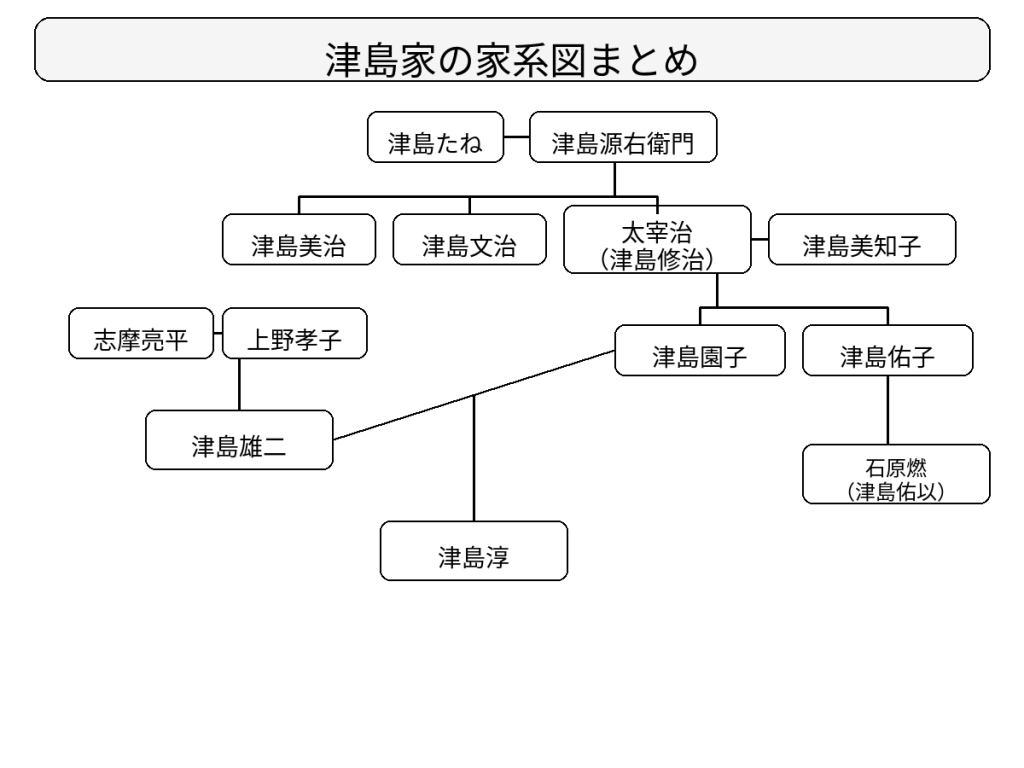 津島淳さんと太宰治の関係を、家系図で解説いたします。